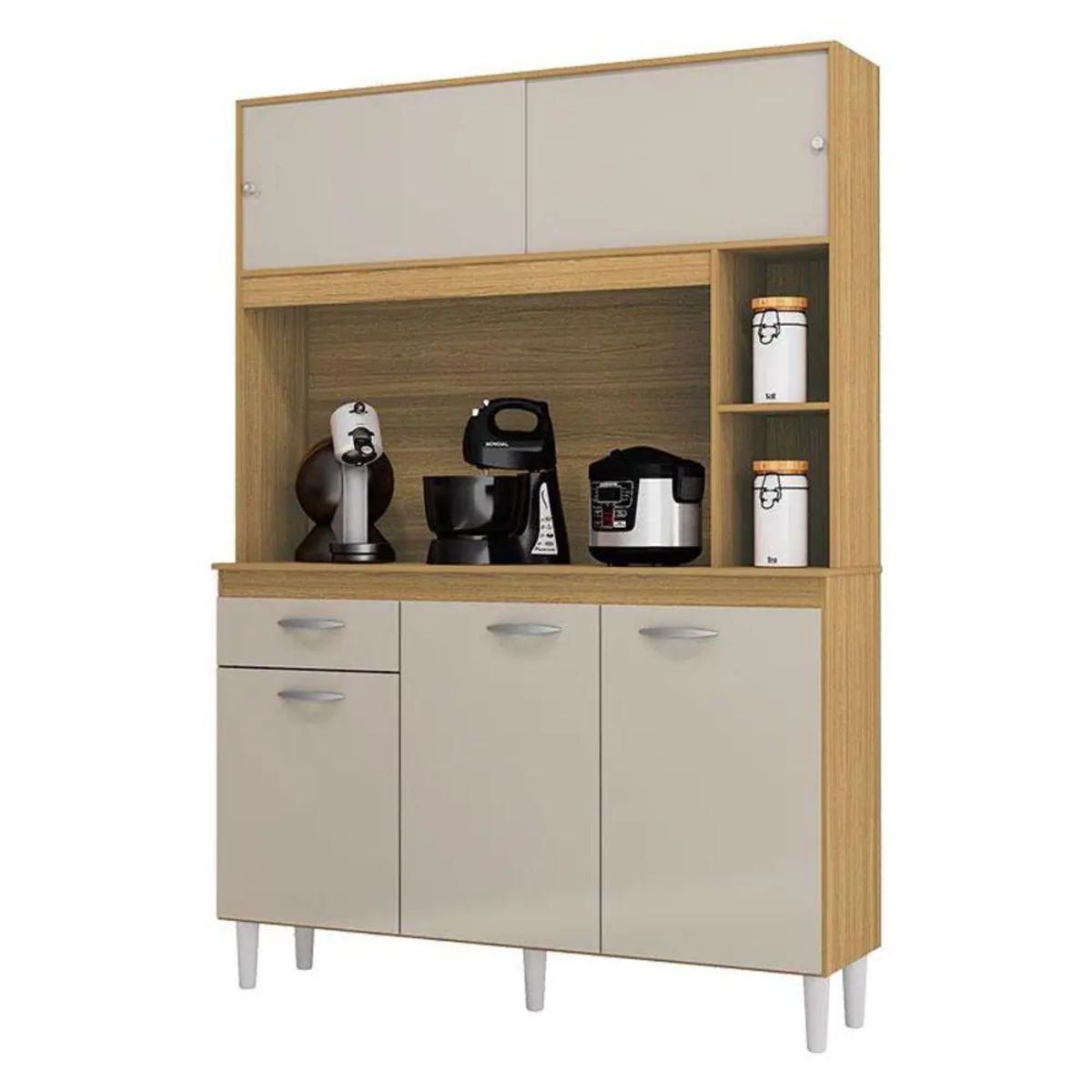 Armário para Cozinha Kit Duda 120cm 5 Portas e 1 Gaveta Damasco Off White - Poquema