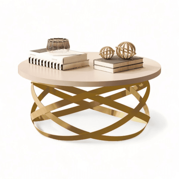 Mesa de Centro Decorativa 100% MDF com Pé de Ferro 8045 Pérola/Dourado JB Bechara